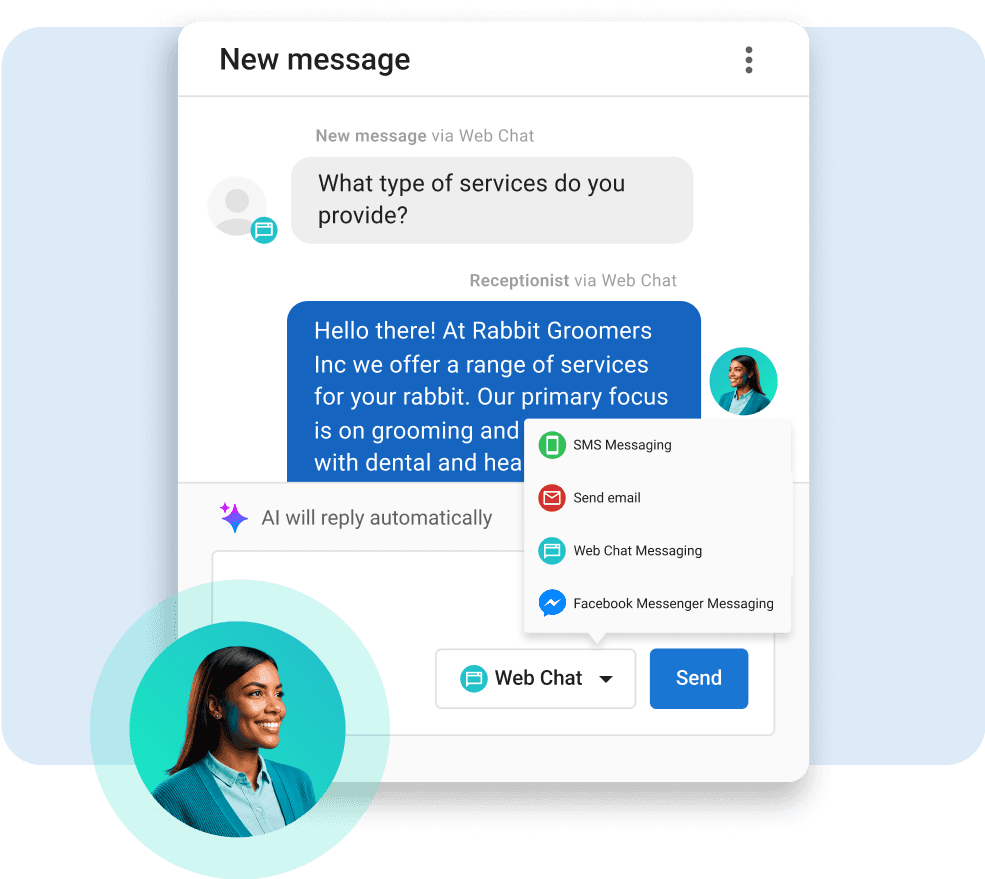 Provide fast, helpful responses through phone, chat, text, or connected sites. Answer questions, promote products and services, book appointments, and handle support issues —all hands-off!