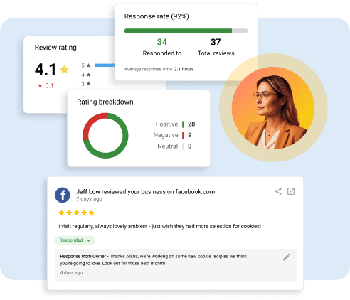 Helps businesses get chosen by more customers. Crafts thoughtful responses to reviews, posts on behalf of the business, and generates review requests to get more positive feedback and handle negative ones.